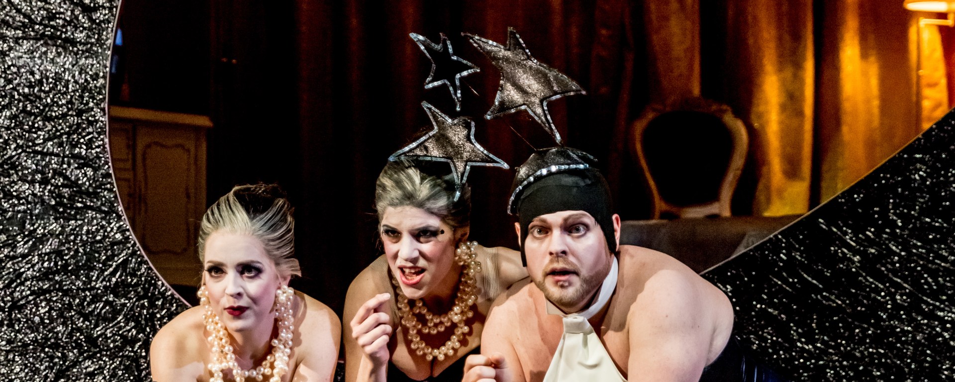 Wenn man diese Produktion in nur wenigen Worten beschreiben müsste, dann wäre die folgende Aneinanderreihung von Wörtern vielleicht nicht verkehrt: Ein absolutes Feuerwerk für Augen und Ohren. Mehr sollte man im Voraus nicht wissen. Auch was die Kulisse und die Requisiten betrifft, sollte man sich überraschen lassen. Viel versprechen sollte man nicht, da die Begeisterung am Ende (hoffentlich) größer ist, als die Erwartungen am Anfang waren. „Powder Her Face“ in der Inszenierung von Magdalena Fuchsberger kann mit den großen Opernproduktionen, die im Opernhaus des Theaters aufgeführt werden, absolut mithalten. Und wer schon immer mal wissen wollte, wie man einen Fellatio musikalisch in Szene setzen kann, der sollte sich diese Produktion nicht entgehen lassen.