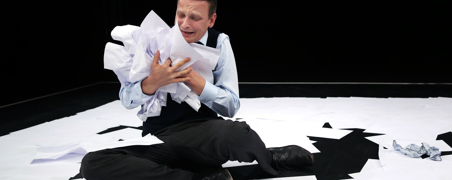Ein Quadratmeter Spielfläche wird im Studio abgeklebt. Auf dem Boden liegen hunderte weiße Blätter. In diesem Rechteck spaziert Christoph Förster alias Aksenti Iwanow Propristschin schon vor Beginn der Aufführung herum. Er ist in einem lässigen Beamten-Look gekleidet. Als das Scheinwerferlicht nur noch auf ihn fällt, beginnt er noch etwas schüchtern mit den Anwesenden Blickkontakt aufzunehmen. Langsam tastet er sich (an die bereits verfassten Tagebucheinträge, die verstreut auf dem Boden herumliegen) heran und beginnt seine Geschichte zu erzählen. Försters Propristschin ist ein akkurater Mitarbeiter im Ministerium, der nicht nur seine Arbeit gewissenhaft erledigt, sondern auch perfekt das Beamtendeutsch beherrscht. Er lässt durchscheinen, dass seine Kollegen durch ihn hindurchsehen, als würde er gar nicht anwesend sein. Dabei ist Propristschin ein sympathischer Kerl. Denn Förster schafft es bereits in den ersten Minuten, das Publikum mit seinem verschmitzten Lächeln und seiner lockeren Art zu fesseln. Nebenbei mimt er auch noch die anderen Figuren, von denen er in seinen Erzählungen spricht. Er versucht die unangenehmen Situationen, in denen er verfällt, mit Humor zu nehmen und mit einer kleinen Portion Selbstbewusstsein zu überspielen. Doch irgendwann fehlt ihm die Kraft und er lässt alle daran teilhaben, dass er keine Perspektive auf Anerkennung hat. Sei es im Job oder im Privatleben. Er wirkt fehl am Platze und auf dieser Welt, da niemand ihm eine Chance geben möchte, mit ihm in Kontakt zu treten. Förster ist in dieser Rolle unglaublich wandelbar und ausdrucksstark in Mimik und Gestik. Während er in einem Moment alle zum Lachen bringt, schafft er es, dass man im nächsten Augenblick seinen innerlichen Schmerz spürt. Das Taschentuch, an dem er sich vehement festklammert, ist das einzige, was ihn etwas zur Ruhe bringen kann. Christoph Förster vermittelt in den 90 Minuten das Bild eines Mannes, der einfach nur von der Gesellschaft akzeptiert werden möchte, es aber nicht wird. Als dann der Knoten platzt und er den Selbsthass nicht mehr kontrollieren kann, spürt der Rezipient, wie sich sein Selbstbewusstsein von 0 auf 100 verändert. Er pflanzt sich selbst ein Bild in seinen Kopf, welches nicht der Realität entspricht. Doch in der Scheinwelt, in der er lebt, wird er so behandelt, wie er es für richtig zu halten scheint bzw. man nimmt ihn wahr, so wie er es sich immer gewünscht hat – und sogar darüber hinaus.
