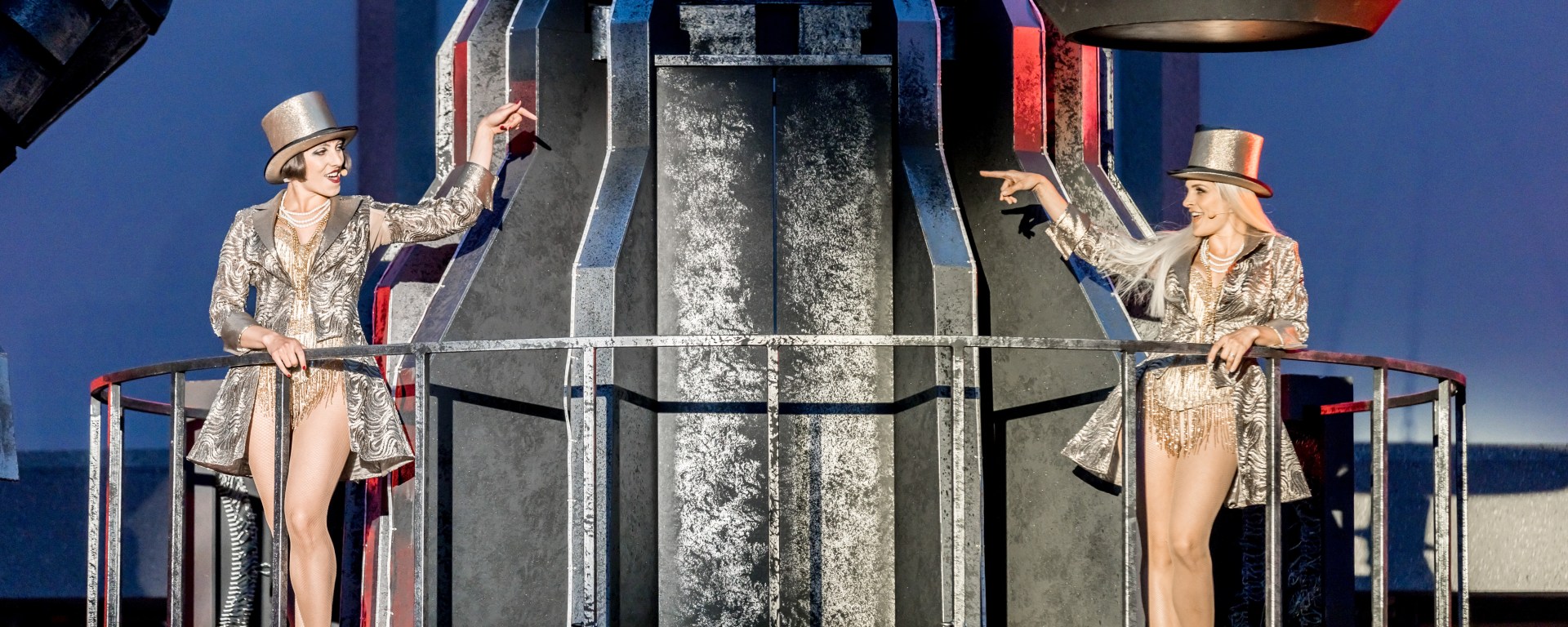 Die Besetzung könnte kaum hochwertiger sein. Denn das, was die einzelnen Protagonisten auf die Bühne bringen, macht schon fast dem Broadway Konkurrenz. Nachdem das Theater Ex-No-Angels-Mitglied Sandy Mölling bereits 2014 für das DomplatzOpenAir gewinnen wollte, kann man heute von Glück, wenn nicht sogar von Schicksal sprechen, dass es damals nicht geklappt hat. Denn Mölling macht Roxie Hart zu einer sexy Diva, gibt sich flirty vor den Kameras und lernt schnell, wie sie die Presse und das Publikum in ihren Bann ziehen kann. Manipulation wird zu ihrem größten Talent. Aber auch stimmlich leistet sie sich hier keine Fauxpas und glänzt mit ihren gesanglichen Darbietungen. Obwohl ihre Rolle im Mittelpunkt steht, muss Mölling sich nicht nur als Roxie Hart im Gefängnis neben Velma Kelly durchsetzen können, sondern auch neben deren Darstellerin Marcella Adema. Denn Adema stellt ihre Bühnenpartnerin (zumindest am Premierenabend) ein wenig in den Schatten. Sie passt optisch und stimmlich genau in das Genre und sowie in die Zeit und wirkt trotz des Glamours, den sie im Gefängnis erfährt, ein wenig sympathischer als Hart. Sobald Daniel Rakasz als Anwalt Billy Flynn die Bühne betritt, fangen einige Frauenherzen an schneller zu schlagen. Denn Rakasz tritt in seiner Rolle überzeugend und selbstsicher auf, da er ganz genau weiß, wie er seine Mandantinnen in Szene setzen muss, damit nicht nur sie, sondern auch er in aller Munde sein kann. Damit er vor allem bei den weiblichen Zuschauern noch ein wenig im Gedächtnis bleibt, gibt es auch noch einen freizügigen Auftritt obendrauf. Das wäre ihm auch ohne die kleine Oben-Ohne-Einlage gelungen, denn auch stimmlich holt er das Maximale raus. Auch Enrico de Pieri, der als Roxies Mann Amos auftritt, kann trotz seiner relativ wenigen Auftritte und nur einer größeren Gesangseinlage Sympathiepunkte sammeln. De Pieris Amos liebt seine Frau und unterstützt sie in allen Belangen, gibt sich gutgläubig und etwas dümmlich. Deswegen schauen die meisten Menschen einfach durch ihn hindurch. Das macht ihn traurig. Doch obwohl Amos in seiner Welt wie Luft behandelt wird, bekommt De Pieris Rolle am Ende doch die verdiente Anerkennung vom Publikum. Auch Gerben Grimmius als Klatschreporterin Mary Sunshine schafft es, die Zuschauer zum Staunen zu bringen. Denn er überrascht mit einem abgefahrenen Auftritt, der möglicherweise der aufregendste des Abends ist. Und Carin Filipčić als Gefängnisaufseherin Mama Morton liefert ebenso eine starke Leistung ab. Zusammen mit den restlichen Akteuren, dem Opernchor sowie dem hauseigenen Ballett hat Wiggers eine großartige Produktion erschaffen, die zu einer fulminanten Show auf den Domplatz geworden ist und die allen Beteiligten viel Spaß bereitet.