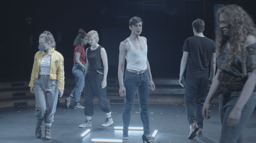 Für diese Geschichte vermischt Regisseur Alexander Weise erfahrene SchauspielerInnen mit LaiendarstellerInnen, die als Hauptprotagonist verschmelzen, aber auch die einzelnen Rollen von Nebenfiguren einnehmen. Weise setzt hierbei vor allem auf die Energie der Sprechchöre, die zu seinen besonderen Stärken seiner Laufbahn zählen. Sie sind eindringlich, voller Emotionen und nagen am Zahn der Zeit. Es fallen Worte, die beim Publikum einen bitteren Beigeschmack hinterlassen. Aber so ist es nun mal auch in der Realität. Schonungslos und unzensiert. Dabei werden die Akteure mit eigens von ihnen live kreierten Loops und Gitarren- und Geigenklängen von Musiker David Schwarz unterstützt. Dieses Zusammenspiel löst beim Publikum ein Gefühl von Enge und Befangenheit aus. Denn „Anderssein“ wird noch immer nicht akzeptiert oder gar als völlig normal angesehen. Menschen sollen gewisse Normen erfüllen, so auch Eddy. Er ist zwar intelligent, was auch in den vereinzelten Monologen der DarstellerInnen deutlich wird. Aber dass er sich als junger Bursche nicht so kleidet und verhält, wie seine MitschülerInnen es tun, stößt auf Ablehnung und endet in gewalttätigen Auseinandersetzungen. All diese Aspekte bringen die SchauspielerInnen hervorragend zur Geltung. Es ist kaum zu unterscheiden, wer schon länger auf der Bühne und wer von den KünstlerInnen noch frisch im Rampenlicht steht. Dabei zeigt jeder Einzelne von ihnen optisch eine ganz eigene Persönlichkeit Eddys. Sie sind anders, aber dennoch eins: in der Findungsphase. Weise legt den Fokus voll und ganz auf seine DarstellerInnen und zeigt damit auch, dass es nicht immer ein großes Bühnenbild bedarf, um die Handlung zu unterstützen. Denn mit Hilfe der SprecherInnen werden die einzelnen Monologe zum Kopfkino – mit bitteren Erkenntnissen, dass sich diese Bilder und Auseinandersetzungen alltäglich auf der Welt abspielen.
