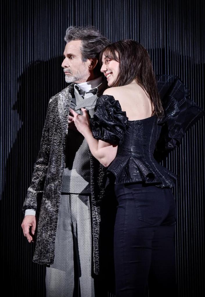 Die Beziehung zwischen Alceste und Célimène würde man heutzutage möglicherweise als toxisch bezeichnen. Denn die junge Witwe ist der Grund, warum der unglücklich verliebte Narzisst seine eigenen Ideale immer wieder in ihrer Anwesenheit über Bord wirft und nicht von ihr loskommt. Es ist schon fast unangenehm, das Hin und Her zwischen den beiden mit anzusehen. Der Altersunterschied und die damit einhergehende Lebenserfahrung der beiden Hauptdarsteller spielt dabei sicherlich auch eine Rolle, wird aber nicht konkret thematisiert. Man möchte Matthes‘ Alceste schütteln und ihn darauf aufmerksam machen, dass es da draußen noch andere Frauen gibt. Arsinoé (Judith Hofmann – eine wahrhaftige Bühnenpräsenz) zum Beispiel, die immer wieder um das Herz des unglücklich verliebten Misanthropen buhlt, jedoch daran scheitert. Lediglich Éliante (Lisa Hrdina) fällt noch halbwegs in sein Beuteschema. Aber auch nur, weil er Angst hat, irgendwann ganz alleine, also ohne Frau dazustehen. Denn wenn man Matthes‘ Interpretation des „Menschenfeindes“ ganz genau unter die Lupe nimmt und beobachtet, sieht man einen Mann auf der Bühne, dessen größte Angst es ist, keine tiefe Liebe zu erfahren.
