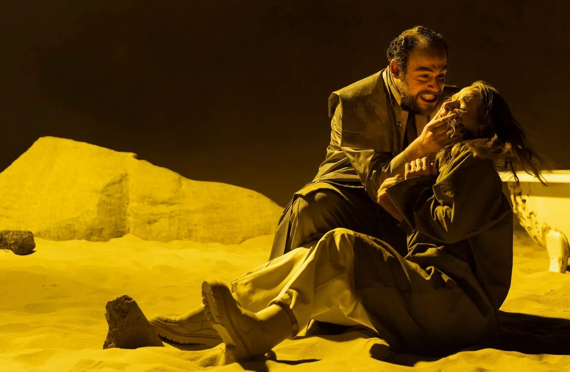 Obwohl die Inszenierung immer wieder unerwartete Wendungen nimmt und somit auch neue Themen aufgemacht werden, wirkt das Stück keineswegs überladen und vollgestopft, als hätte man alle erdenklichen Red Flags versucht, in die 90 Minuten des Schauspiels zu quetschen. Starikow schafft es mit ihrer Interpretation, das Publikum nicht zu überfordern, aber dafür gehörig auf den Zahn zu fühlen und Raum für die eigene Reflexion zu geben. Während man einerseits hofft, dass jeder der beiden Akteure sein ganz persönliches Happy End finden wird, spürt man stellenweise, wie erdrückend und unangenehm manche Darstellungen für einen selbst sind. Das minimalistisch gestaltete Bühnenbild von Simon Lesemann lenkt den Fokus direkt auf die beiden Schauspieler und deren Handlung, hinterlässt allerdings auch eine Schwere, die zu dem Drama passt. Der Sandpark, der fast einer Wüste gleicht, und die Badewanne als Bank lassen sich hier hervorragend auf die ertränkende Sehnsucht und tiefe Verzweiflung, in die Avdics und Schuberts Figuren regelrecht ertränken, übertragen. Das Stück wird in den meisten Fällen mit Sicherheit Nachwirkungen bei einzelnen Besuchern aufweisen. Die anderthalb Stunden Spieldauer vergehen zudem auch wie im Fluge und weisen absolut keine unnötigen Längen auf. Kurz gesagt: Hier sind Thema und Schauspiel einfach on Point.